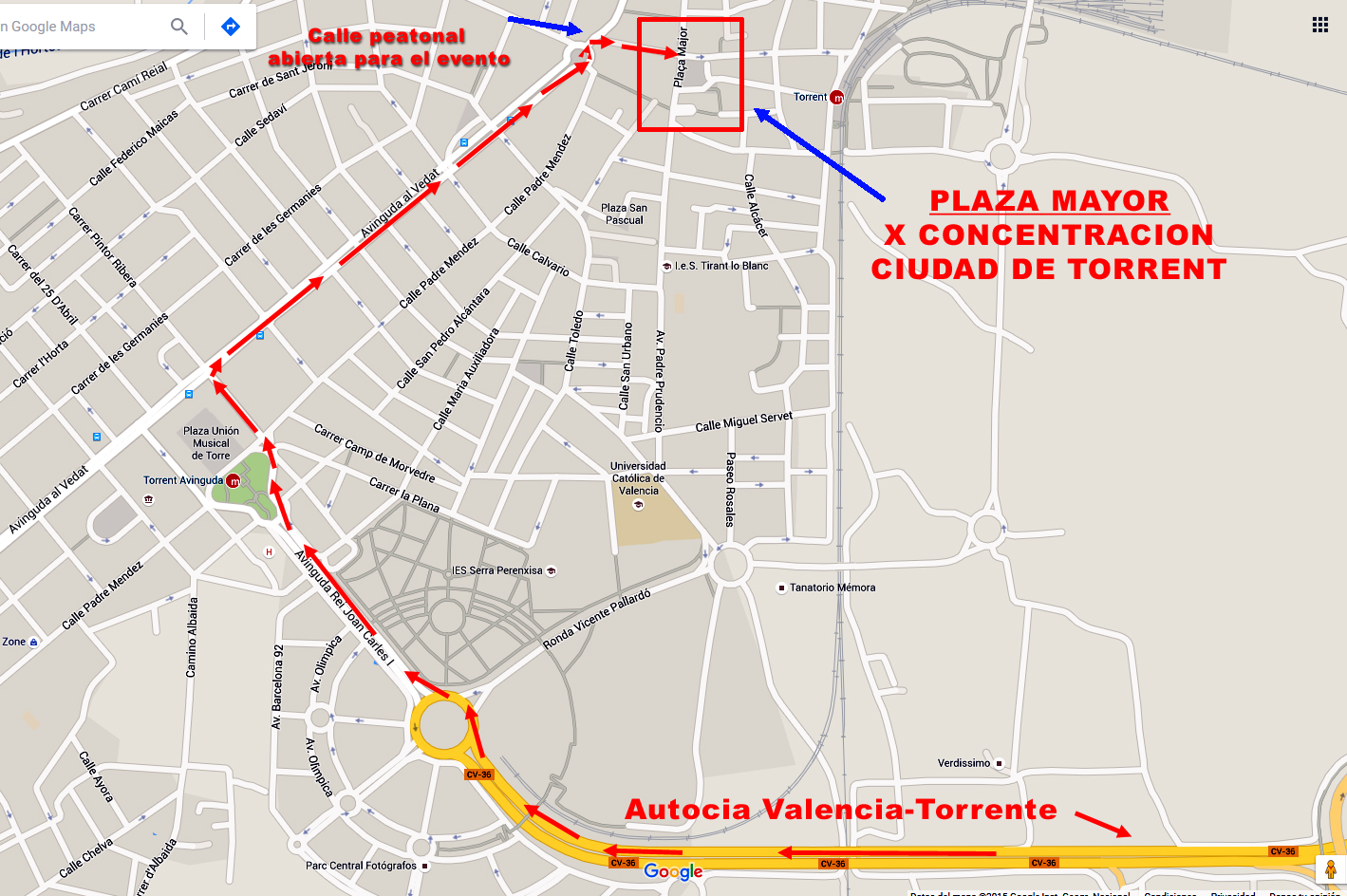 Os envió información de cómo llegar a la Plaza del evento. Ver plano adjunto en pdf.